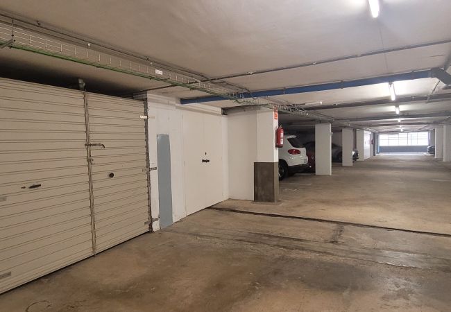 Garage cerrado con dos plazas de parquing dentro, la puerta del garage mide aproximadamente 2 m. Ideal para un coche pequeño, moto o para trastero. Situado en L´Estartit .